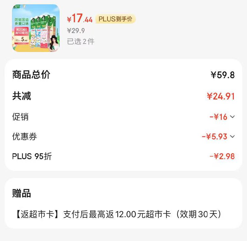 拍2件Plus单件17.44元