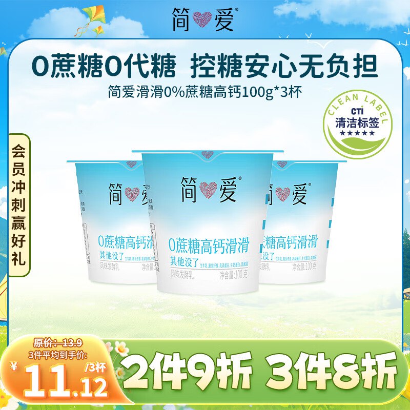 🎒 简爱 0%蔗高钙滑滑100g×3杯