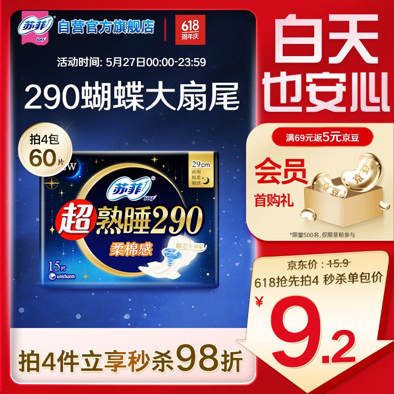 🎒 苏菲 超熟睡柔棉感夜用卫生巾29cm15片