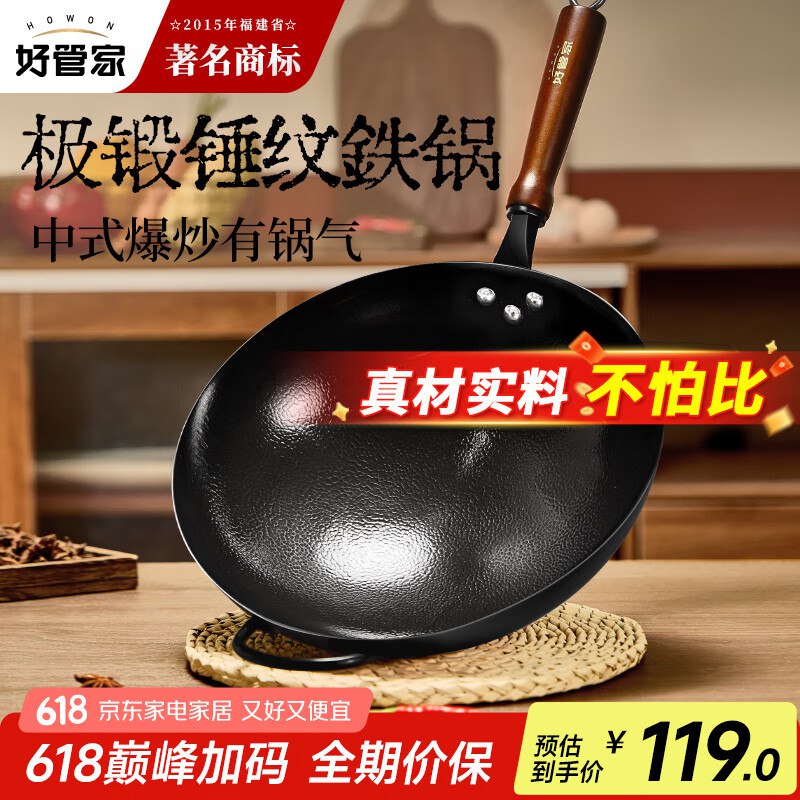好管家炒锅铁锅无涂层锤纹锅34cm