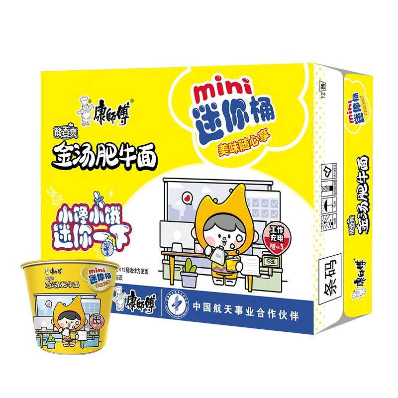 康师傅方便面 酸香爽金汤肥牛杯面62g×12 迷你杯