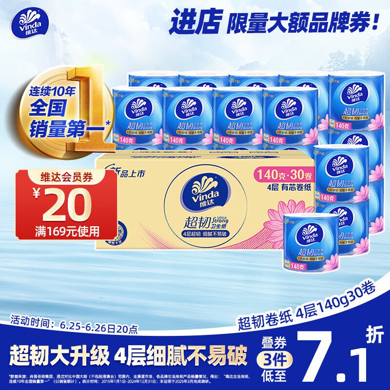 维达(Vinda)有芯卷纸 超韧4层140克×30卷