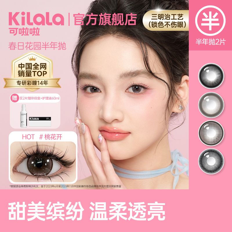可啦啦春日花园美瞳半年抛2片彩色隐形眼镜学生女大直径官方正品