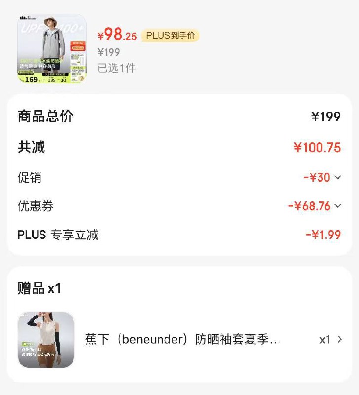 凑后98.2元,赠防晒袖套一双