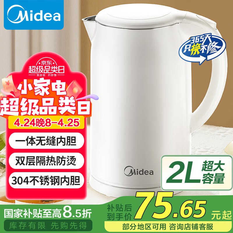 🎒 美的(Midea)电热水壶304不锈钢 1800W 2L