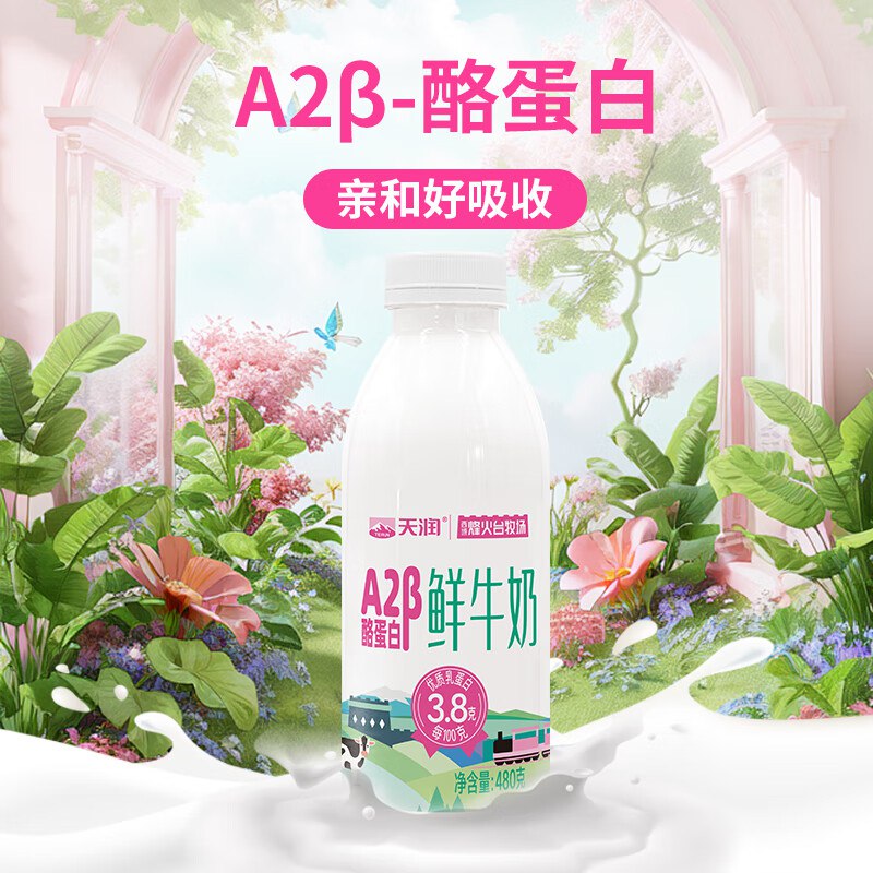 🎒 天润新疆鲜奶 A2β-酪蛋白 3.8g优质蛋白鲜牛奶低温奶 480g,