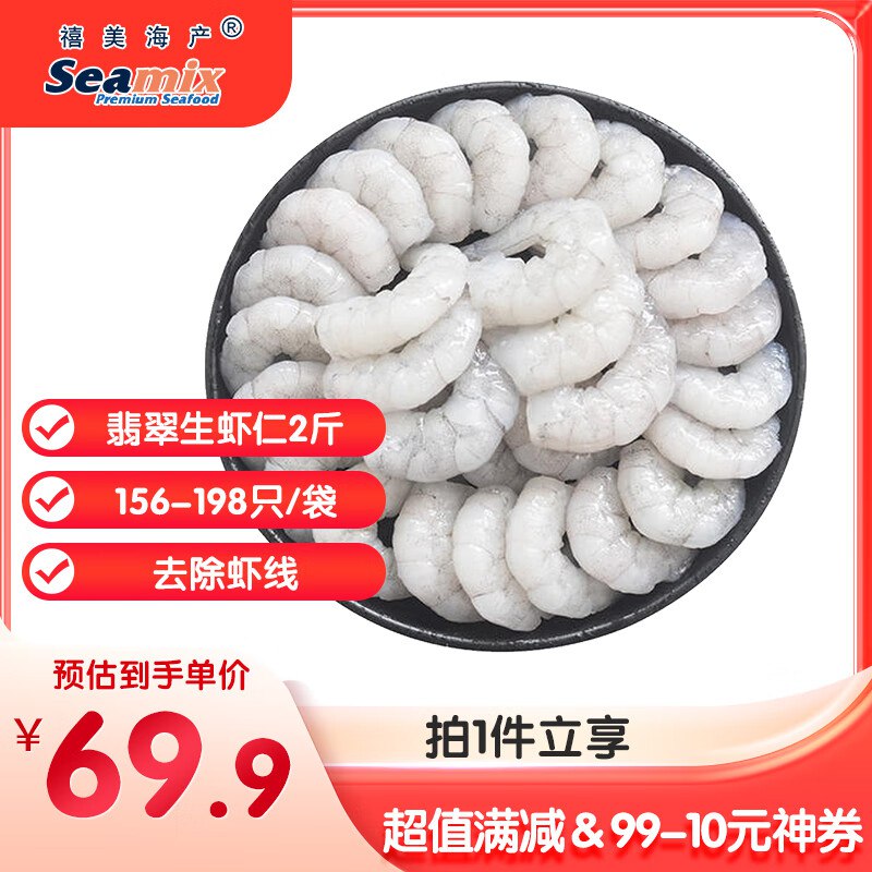 禧美海产 翡翠生虾仁净重2斤装 155-198只/袋