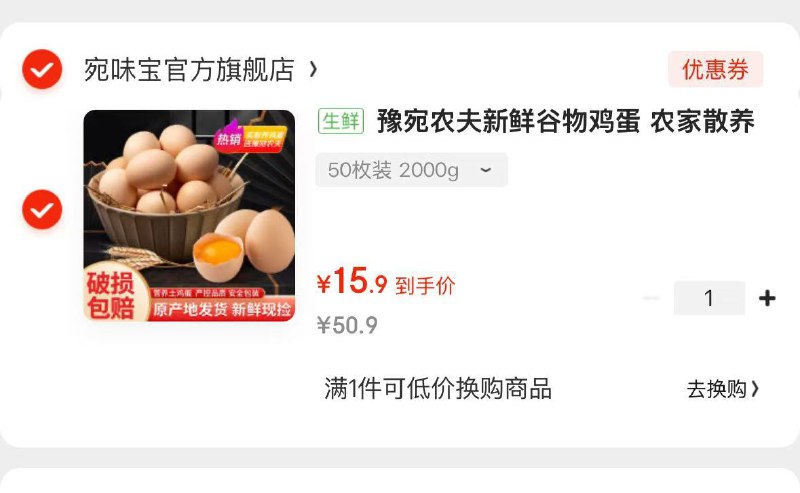15.9元 豫宛农夫土鸡蛋50枚/2kg