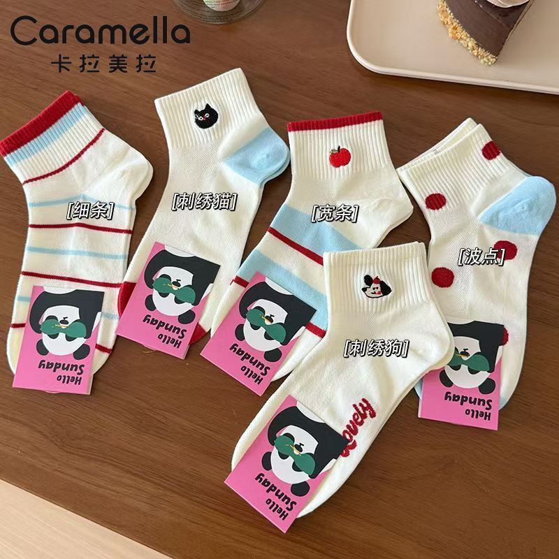 CARAMELLA白色袜子女夏季薄款可爱百搭ins潮韩版网眼运动短袜卡通