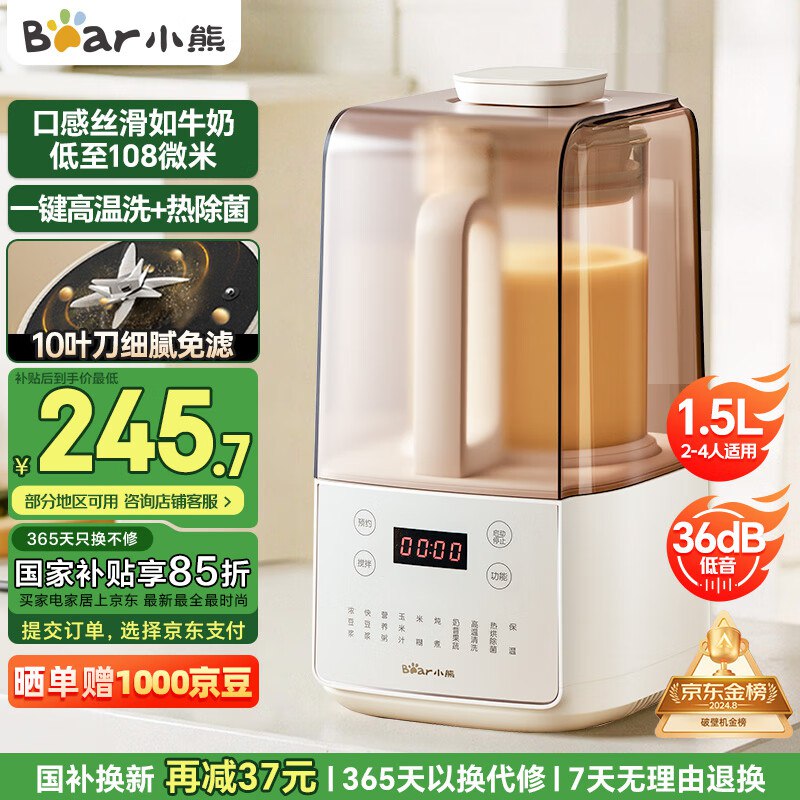 【自营】小熊(Bear)低音降噪破壁机1.5L