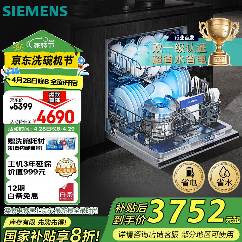 3752元 黑玻璃面板14套大容量嵌入式洗碗机 SE43EB26KC