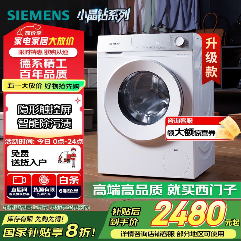 西门子 小晶钻智净版 10公斤滚筒洗衣机
