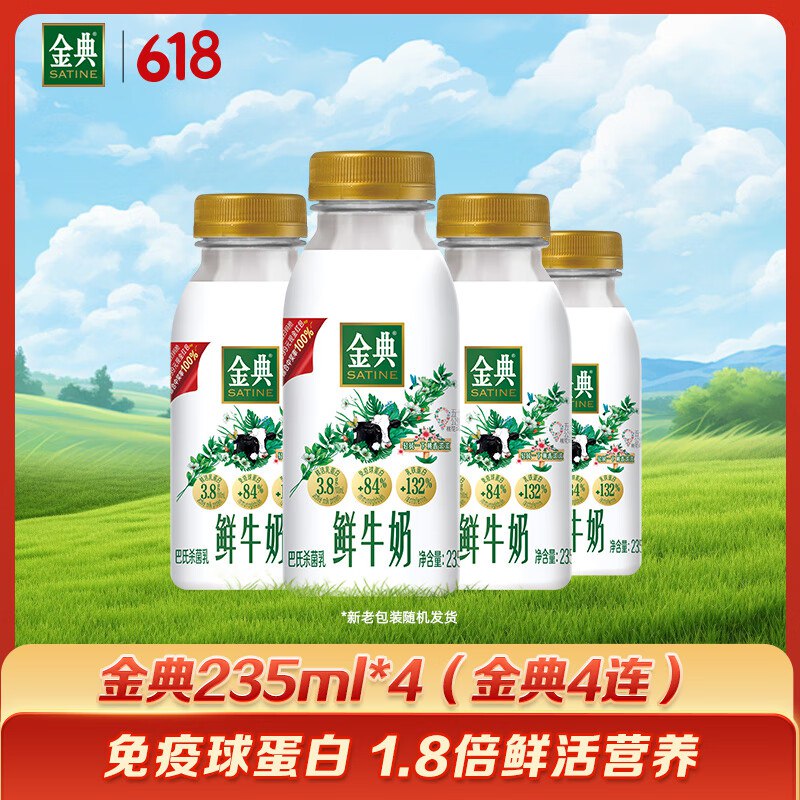 伊利金典鲜牛奶 低温牛奶 235ml×4
