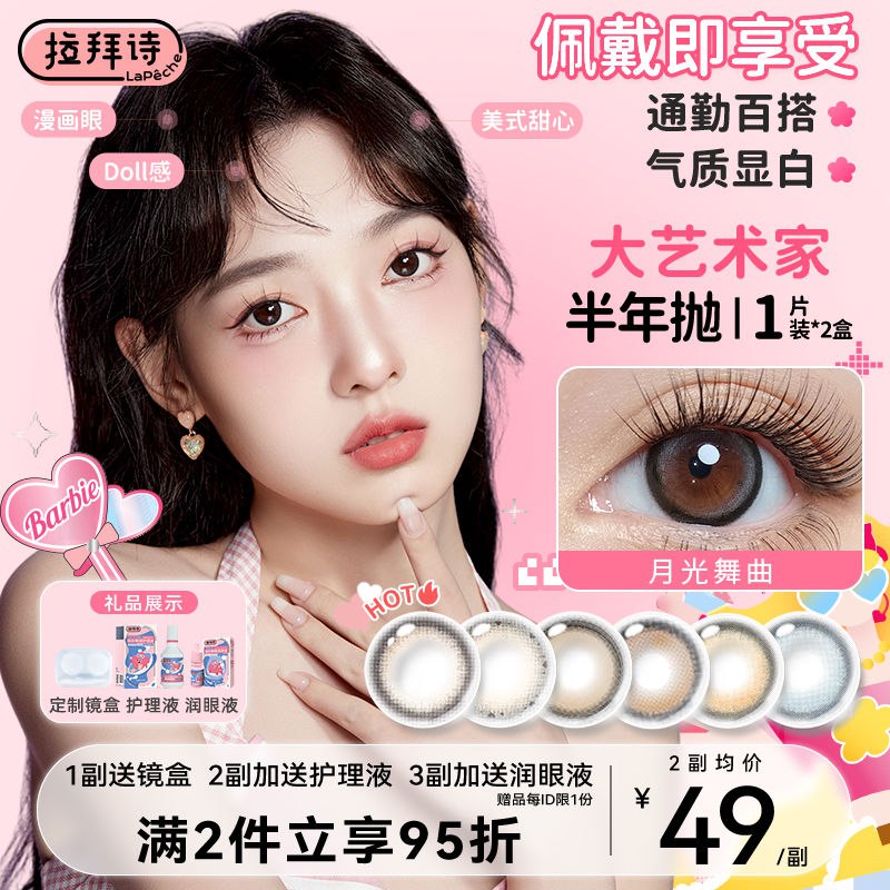 拉拜诗美瞳大艺术家爆款半年抛1片×2盒大小直径隐形眼镜月光舞曲