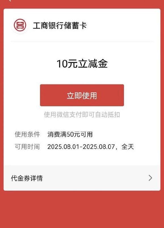 【工行北分】周五大毛,微信立减金10元